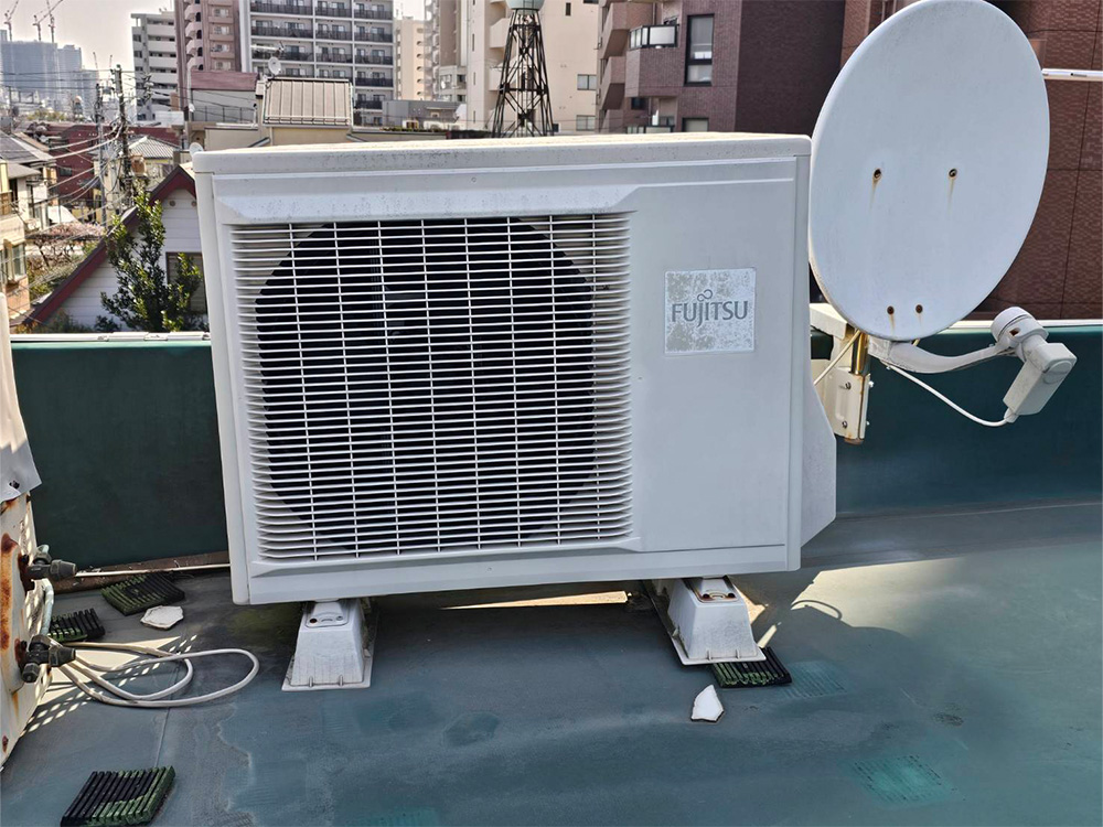 クレーンを使用しないと室外機の搬出入が出来ないと他社で断られしまい、弊社にご相談いただきました。