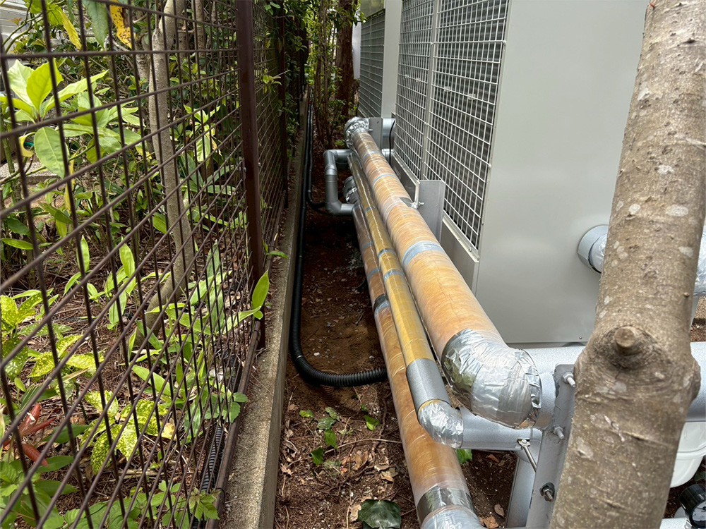 また、電源線の太さも14ミリから38ミリに変更になるため、室内外ともに線が見えないよう地面の中や天井・壁内を通るように配線しなおしました。