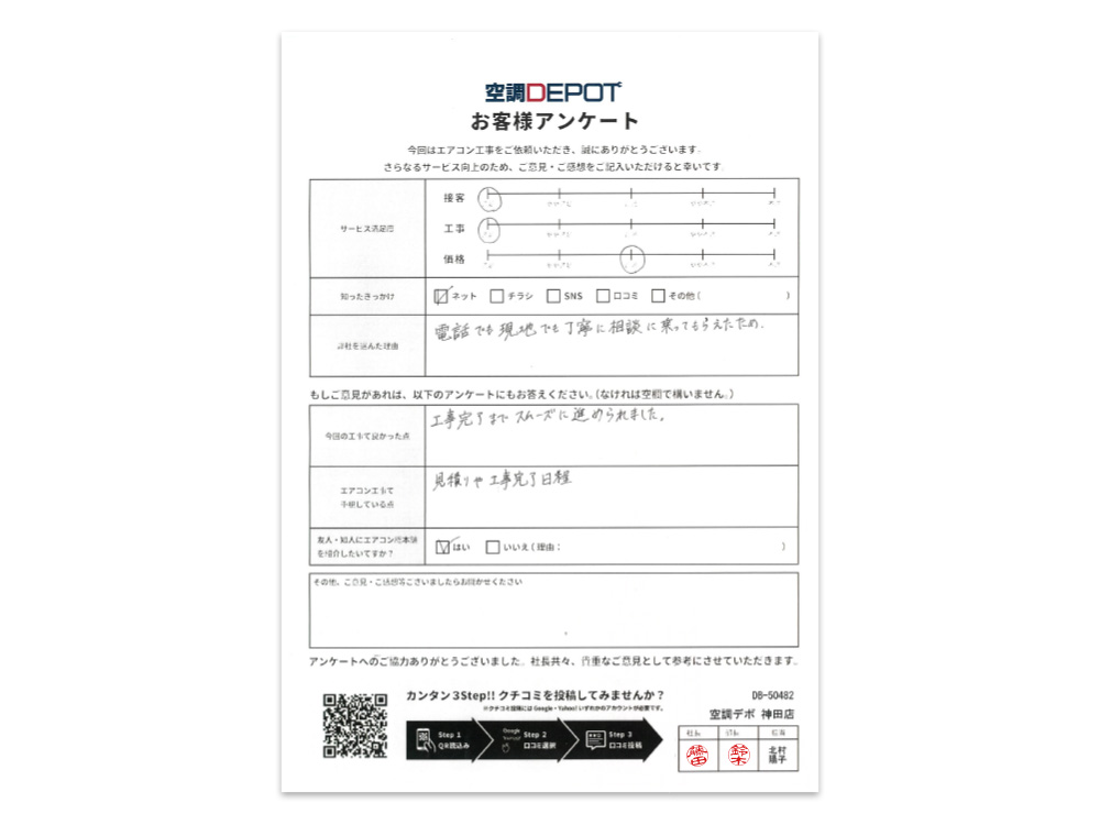 飲食店既設エアコン故障のため、最短で工事してほしいとのご相談があり、すぐに現地調査とお見積もりをさせていただきました。