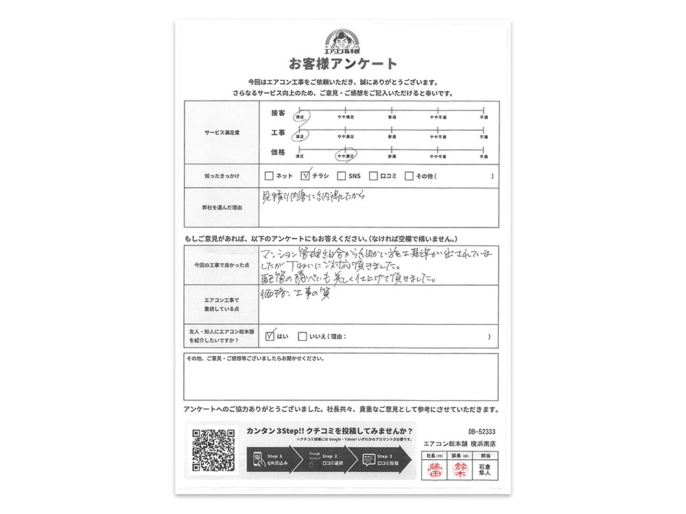 弊社HPよりお問い合わせ。他社との相見積もりでしたが、金額面と後述の施工内容での対応力などで、弊社にご依頼いただきました。