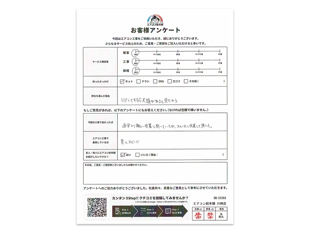 ネットで弊社クチコミをご覧になり、ご依頼いただきました。