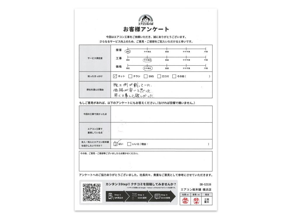 | 工事時間 | 工事員2名で3.5時間 |
