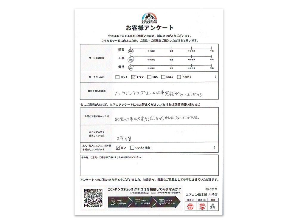 弊社チラシをご覧になり、施工実績が決め手となりお問い合わせいただきました。