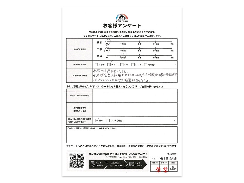 ご来店のお客様で、ご自宅の天井埋込エアコンの更新でご相談いただきました。